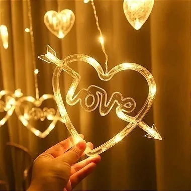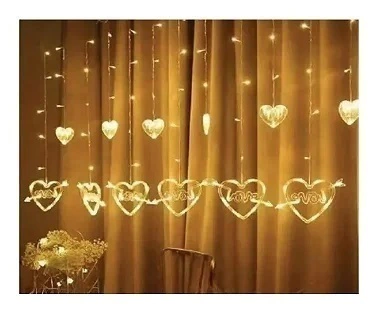 A Cascata com 138 LEDs Branco quente com corações na ponta 8 funções tomada macho e fêmea 2,5 metros 127V, ideal para todo tipo de decoração; O produto mais utilizado por arquitetos e decoradores para decorar casas, fachadas, lojas, prédios residenciais e comercio de todo o Brasil.