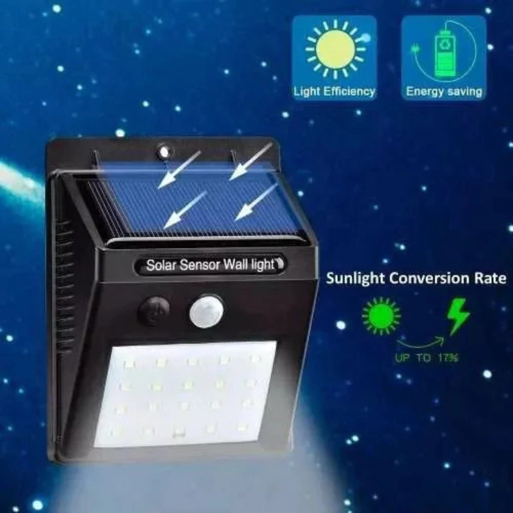 Luminária Solar LED Com Sensor de Presença 20 LEDs IP66.
